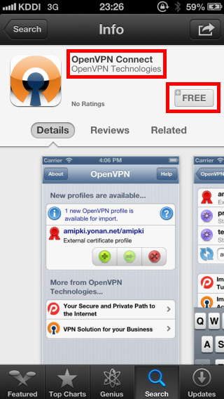 ここでは、iOS に OpenVPN Technologies, Inc. 社の OpenVPN クライアントの iOS 版である「OpenVPN Connect」をインストールして VPN Gate 公開 VPN 中継サーバーへ接続する方法を説明します。