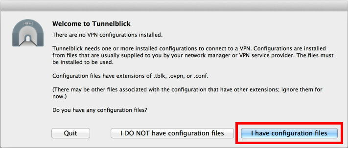 「Create Tunnelblick VPN Configuration」ボタンをクリックします。